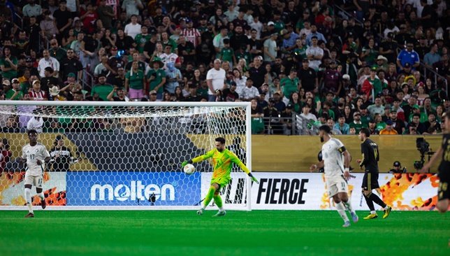وتمكن أليكس فيجا، من تسجيل هدف التقدم لمصلحة المكسيك عند الدقيقة “49” عبر انفراد تام بمرمى نواف العقيدي.