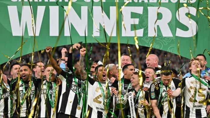 توج فريق نيوكاسل الأحد بكأس رابطة الأندية الإنكليزية لكرة القدم بفوزه على ليفربول بطل الموسم الماضي وحامل الرقم القياسي في عدد الألقاب في المسابقة (10 مرات) 2-1 على ملعب ويمبلي. وبهذا الإنجاز الكبير، يسعى نيوكاسل للعودة إلى دوري أبطال أوروبا أيضا، إذ يحتل المركز السادس في الدوري، ولا يفصله عن الرابع المؤهل إلى دوري الأبطال سوى نقطتين، علما أنه له مباراة مؤجلة وأن فوزه بلقب كأس الرابطة، يضمن له مقعدا في تصفيات مسابقة كونفرنس ليغ.